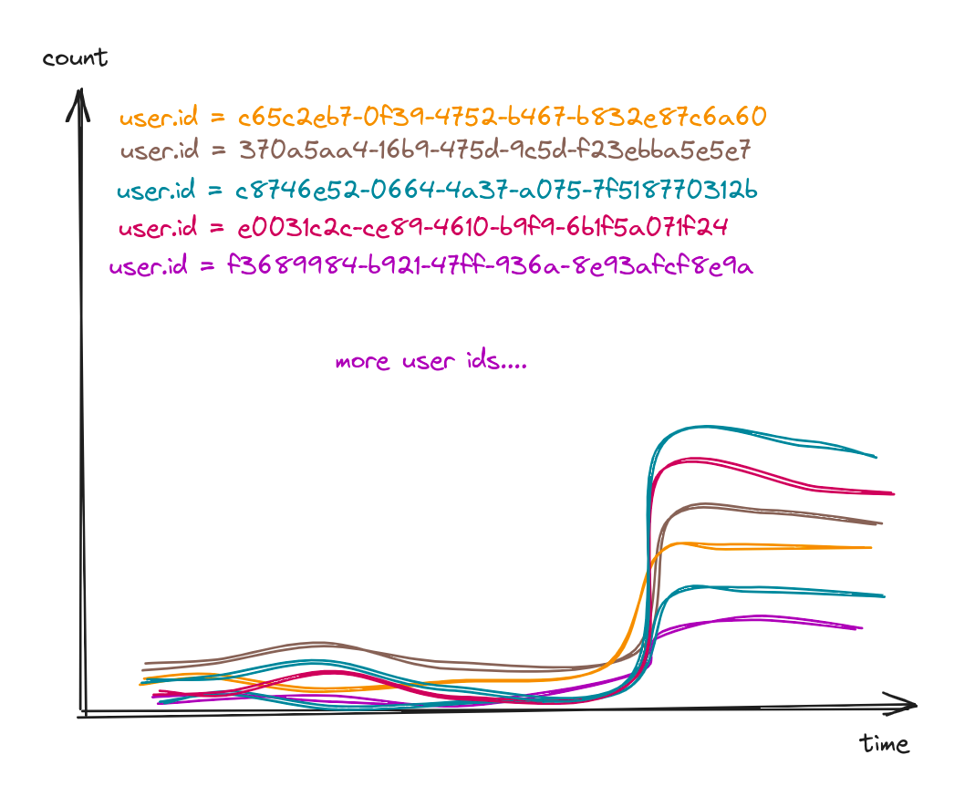 - high cardinality: each field can contain an unbounded number of unique values, such as user IDs, session IDs, or transaction IDs. You could have billions of these per day.